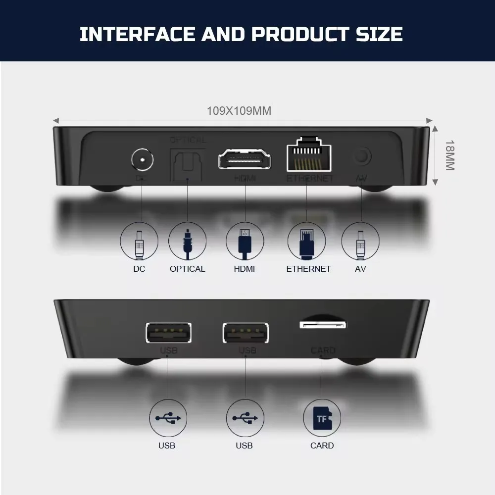 صندوق تلفزيون ذكي يعمل بنظام Android 11 (أو 10 حسب الموديل) بمعالج Allwinner H313 رباعي النواة،